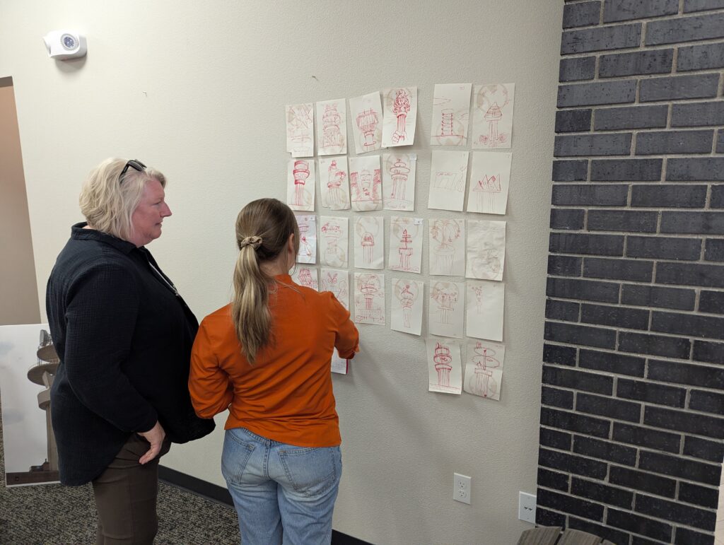 We used part of our time at Hebron in some friendly competition among members: a napkin-sketch challenge to draw their interpretation of the radio tower atop the downtown CenturyLink building.