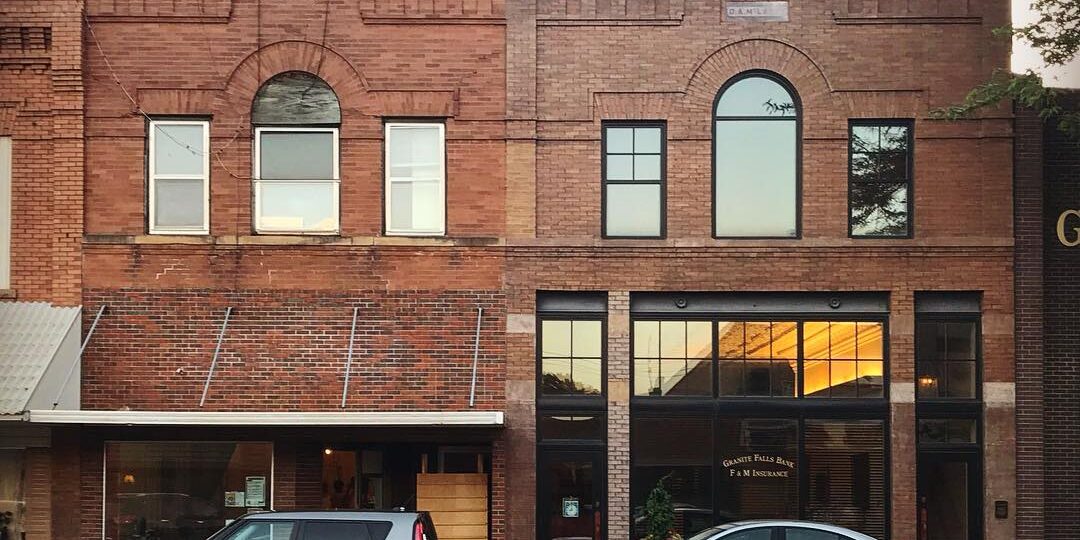 Featured image: Yes! House building (left) next to its “twin” that has been restored as the Granite Falls State Bank. We are hoping to copy to restore the facade so they are identical. Photo Credits: Miranda Moen 2019