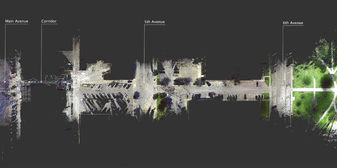 First, what is a laser scanner and how does it work? The scanner creates something called a “point cloud” through the connection of scans made through the usage of mirrors and lasers. Laser pulses take distance measurements at the set range. Now, this is a direct recording of displacement in space over larger distances, unlike camera-based photogrammetry, which uses algorithms in comparing object displacement in multiple photos. Each scan is then uploaded into a program, like Recap, and stitched together to form a 3D model of the scanned environment. As easy as it may seem it takes time to obtain the scans and organize them into a polished state.
