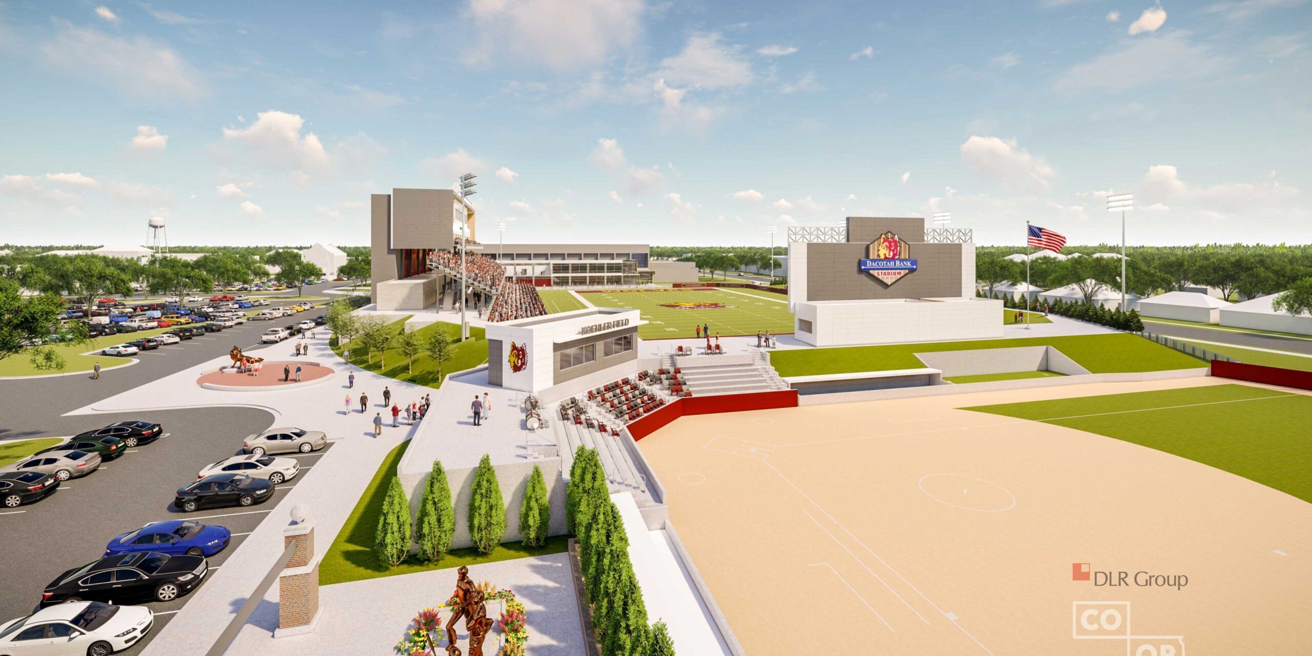 The new facility, which is set to open in fall 2021, will greatly enhance the on-campus student experience – students will be able to walk to a game rather than drive – as well as enhancing the fan experience. Features will include a designated tailgating lot; family-oriented activities such as bean bag tournaments and bounce castles; and seating closer to the action.