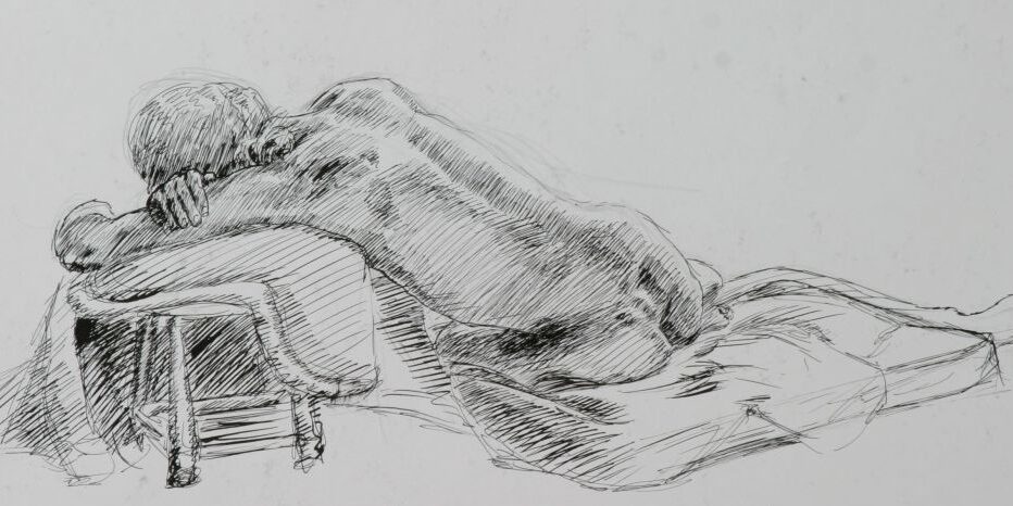 Architecturally, this gesture drawing process can relate to an early massing design workflow where intuitive formal moves are more important than precision, and the paper space activated by the artist is replaced by the site plan. The larger blocks of building program are placed intuitively, attempting to capture the right proportion and relationship between them, similar to identifying key parts of the figure in gesture drawing, such as major bone or muscle groups. Then, in gesture drawing, smaller necessities are informed by sight, experience, and by a fuller understanding of anatomy. Similarly, in architectural planning, training and experience allow intuitive navigation of proportion, adjacency, formal relationships, site lines, climate conditions, site access, and solar angles, and the design can stay “loose.” One can even liken the ability of an artist to identify key anatomical features to an architect’s understanding of basic systems – the artist knowing how to place the muscles over the bones or knowing to look for the sacral triangle is like an experienced architect’s ability to roughly allow for building systems such as a certain size mechanical room or electrical closet at key locations necessary for a properly functioning building, or working within a reasonable “grid” for structural efficiency.