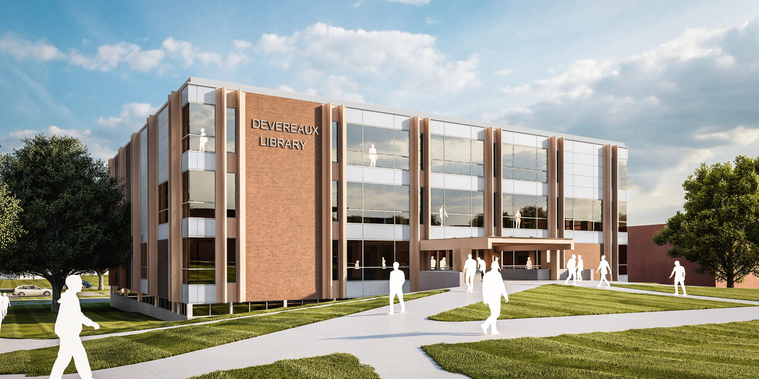 The Devereaux Library Renovation is part of South Dakota Mines 10-year master plan. The intent of this renovation is to create a center of learning where students can collaborate on projects, receive learning assistance, and study – all in one building. As a hub for information, the library will continue to house stacks of books and an archive on the third floor, however, the building will also be home to a maker space, math learning lab, testing center, and the Student Success center. Additional program includes a new office space for the computer help desk and Einstein’s Bros. Bagels (previously located in the Rocker Square apartment building). The exterior of the building is also undergoing major renovations to update the façade and adding in several windows to allow in more natural light.